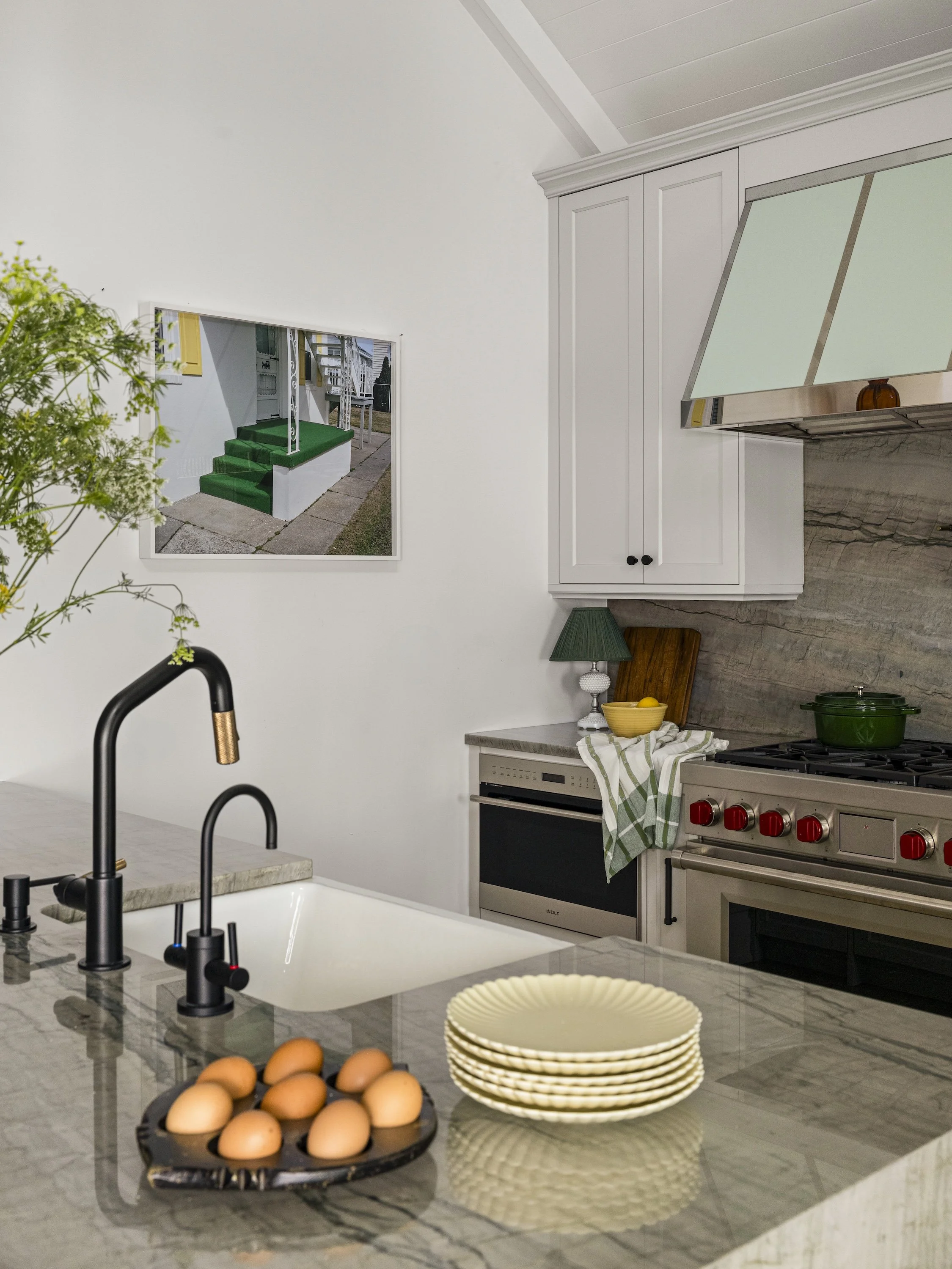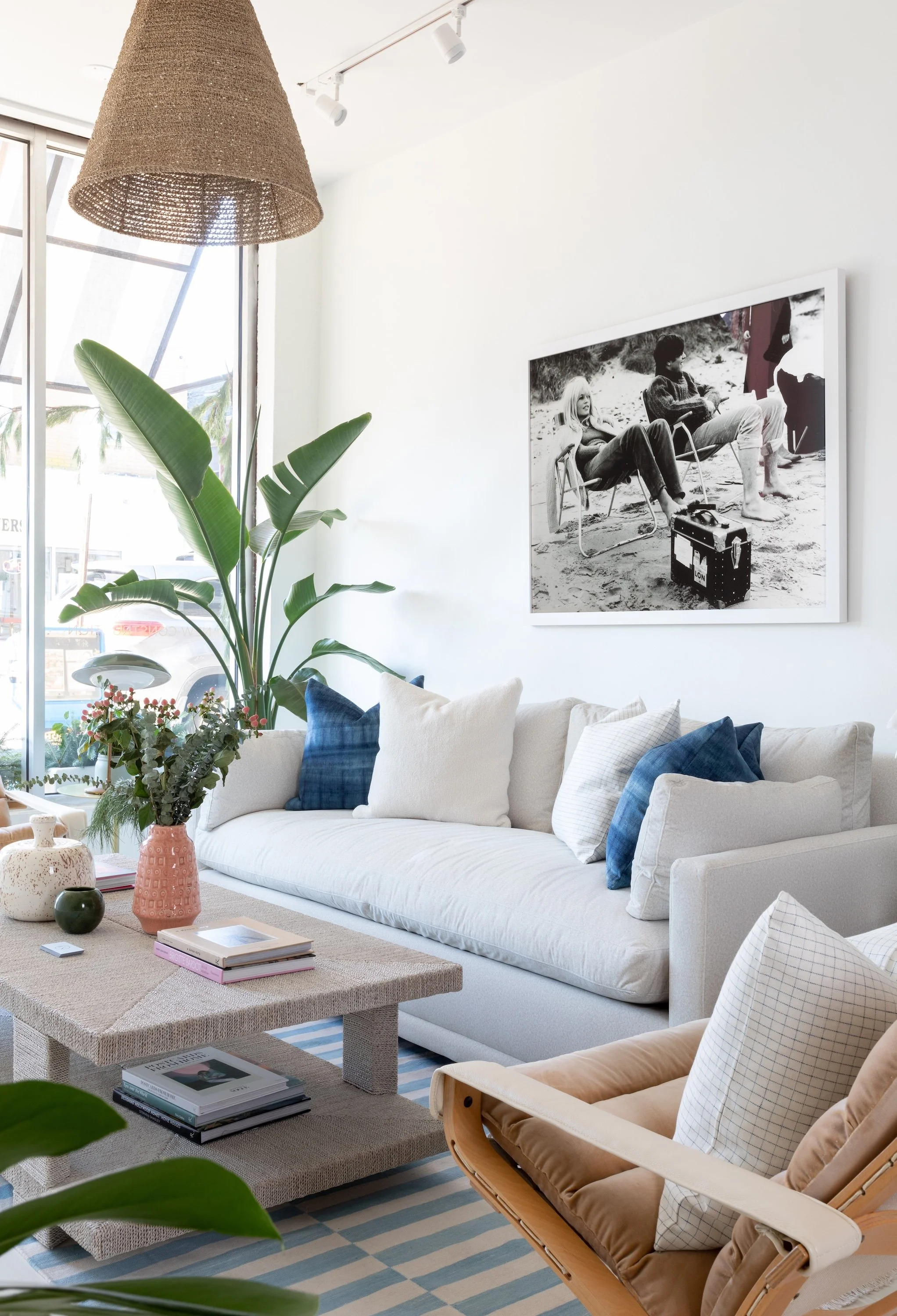 A photograph might have been captured by an emerging artist or by someone she’s had a relationship with for years. It might be surf-centered photography or a time capsule, like photographer Tyler Haughey’s Ebb Tide series of the fabulously run-down midcentury motor lodges found untouched on the New Jersey coast. In any case, the work often inspires the palette and fabrics she curates for the rest of the room. The best palettes, she says, are found in vintage art: nonformulaic hues and combinations that feel unexpected yet irresistible.
